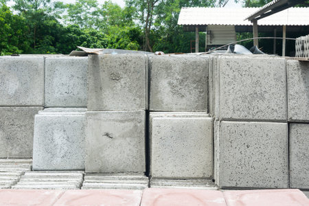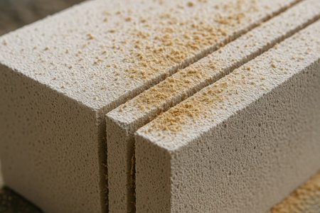 Detailed shot of stacked blocks showing their porous structure, ideal for construction projects, with variations in texture and light.