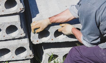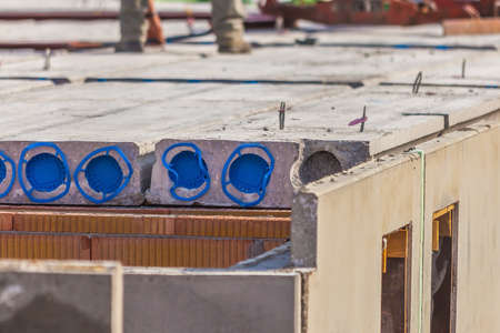 White aerated concrete blocks close-up. Laying aerated concrete blocks. Construction of a house from aerated concrete blocks and bricks. High quality photo