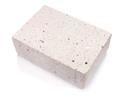 Aerated concrete piece of block isolated on white background. Lightweight concrete texture surface
