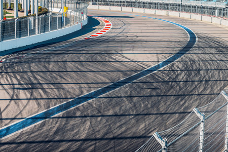 Empty race track in the evening. Perspective view of the track.