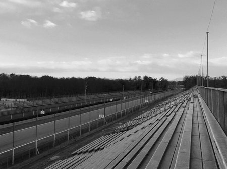 Autodromo Nazionale Monza or Monza National Racetrack in Italy the third more older in the world, built in 1922. Black and white.