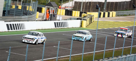 Circuit of Jarama, Madrid, Spain; April 03 2016: Two Ford Escort 1600 RS and a BMW 3.0 CLS in a classic car race at the Jarama circuit
