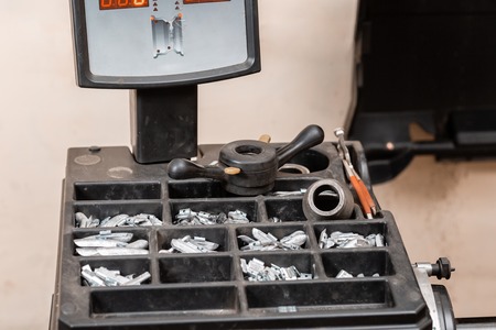 Car service. The tool for repair - Lead small weights and pincers for Wheel Balancing.