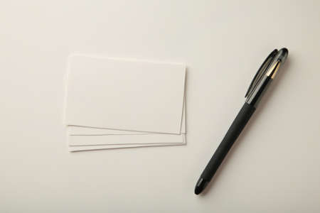 Overhead shot of mock-up greeting card with grey envelope on dark office desk with digital camera and office supplies