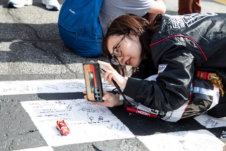 LE MANS, FRANCE - JUNE 11, 2017: Brochure with the team of racers of Fabien Barthez - famous former french goalkeeper and racer 11 june 2017- Weighing, administrative and technical checks of the race cars