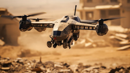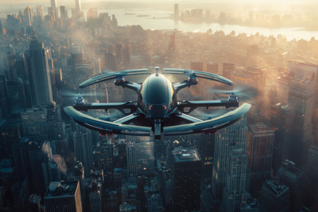 City air taxi, Autonomous High-speed drone aircraft, future of air mobility. horizontal photo