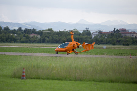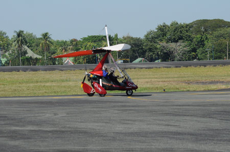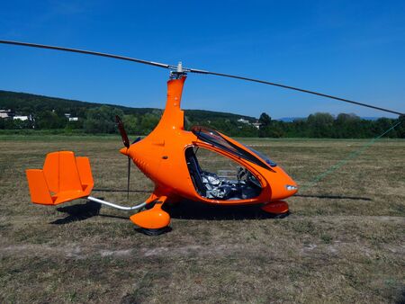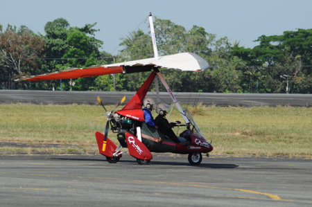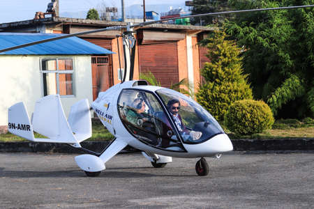 Gyrocopter ready to take off from a Pokhara Airport during a morning.