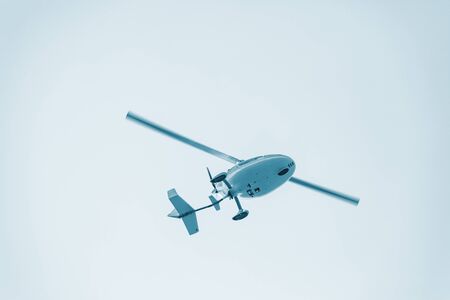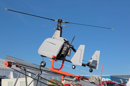 ZHUKOVSKY, MOSCOW REGION, RUSSIA - AUG 24, 2015: Мultipurpose small-sized unmanned helicopter on the launch pad at the International Aviation and Space salon MAKS-2015