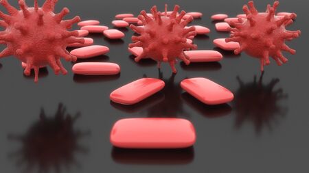 3d render. Coronavirus medicine capsules