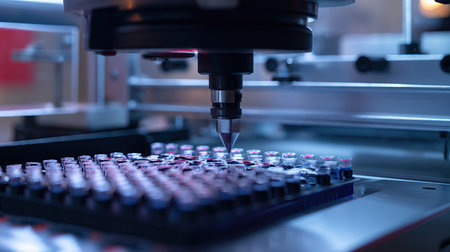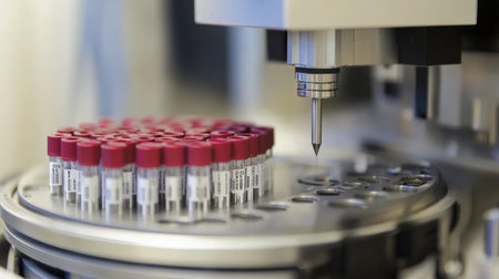 A close-up view of a state-of-the-art laboratory automated system that efficiently processes test tubes, ensuring accurate sample analysis in healthcare environments.