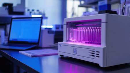 Advanced laboratory equipment with glowing test tubes