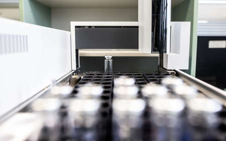 Sample test in vial for Gas chromatography (GC), is a common type of chromatography used in analytical chemistry.