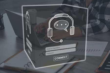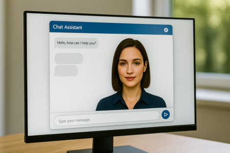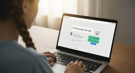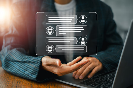 Customer service chat window delivering online support through a computer in a modern virtual office environment, enhancing communication and assistance
