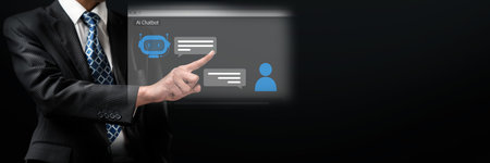 Man uses artificial intelligence chatbots automatically respond online messages. AI Chatbot intelligent digital customer service application concept, Mobile application to help customers instantly.