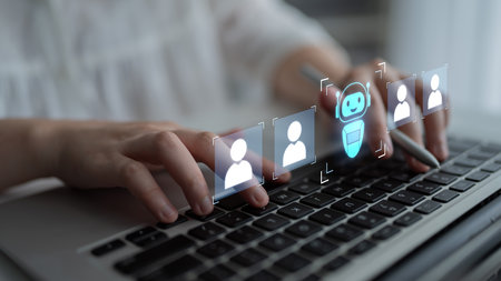 AI artificial intelligence digital chatbot conversing with a customer. Image enhanced with futuristic graphics.