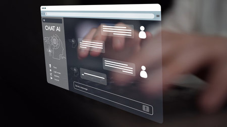 Chatbot conversation Ai Artificial Intelligence technology online customer service.Digital chatbot, robot application, AI generate. Futuristic technology.Virtual assistant on internet.