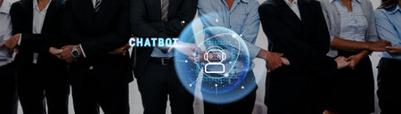AI Artificial Intelligence and conversational chatbots businesses digital technology interact with applications, including customer service, sales and marketing and big data virtual screen.