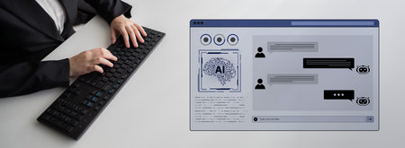 Businessman uses computer to type chat Ask and answer with the artificial intelligence system, chatbot, AI assistant.