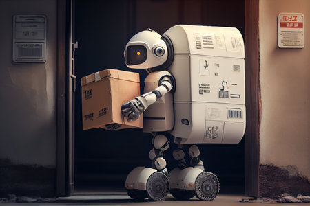 robot courier delivering urgent package with electronic lock, created with generative ai