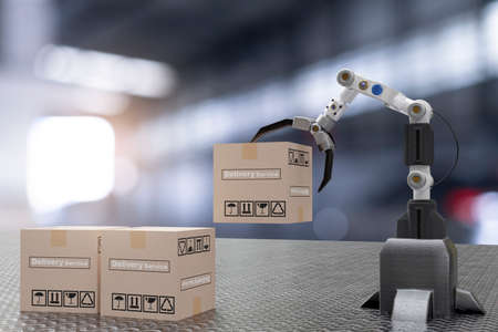 hand Robot cyber future futuristic humanoid hold box product technology 3D rendering device check for industry inspection inspector transport maintenance robot service technology Hi tech industry
