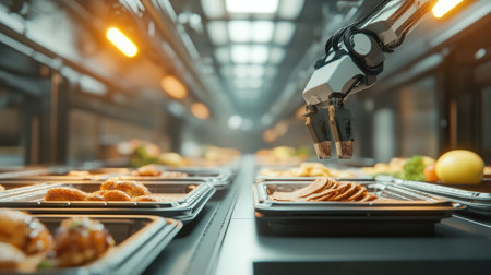 Efficient ai-driven food production line enhances meal preparation in a commercial kitchen
