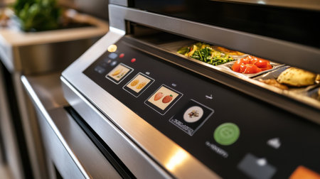 A modern kitchen showcasing advanced cooking technology, featuring delicious dishes being prepared. The fusion of creativity and efficiency captures the essence of culinary innovation.