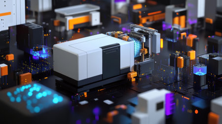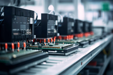 Automated industrial robots assemble electronic devices with precision., generative AI