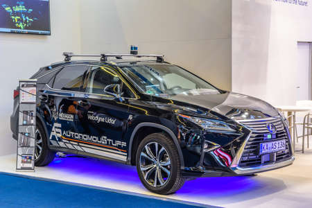 FRANKFURT, GERMANY - SEPT 2019: black LEXUS NX SUV autonomous self driving car, IAA International Motor Show Auto Exhibtion.