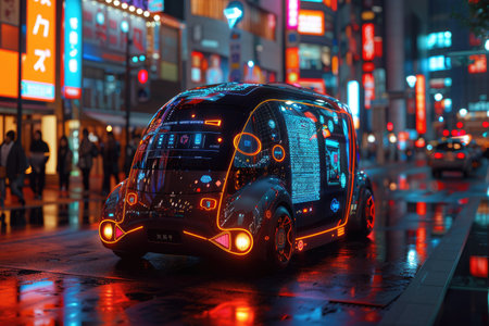 Illuminated neon car in Tokyo, Japan. Tokyo is the capital and largest city of Japan.