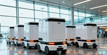 Automation in air logistics: Robots handling cargo at an airport, emphasizing the role of automation in streamlining air logistics.