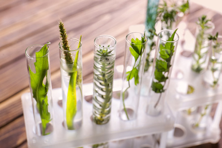 Medical infusions preparation background top view. Quackery with free space closeup, homemade pharmacy, folk medicine concept