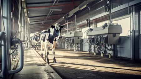 Industrial milking cows and mechanized milking equipment in farm : Generative AI