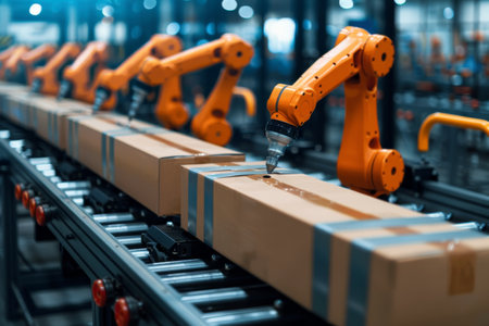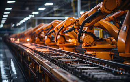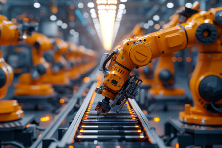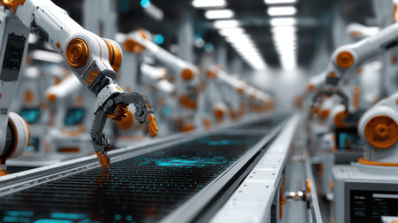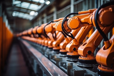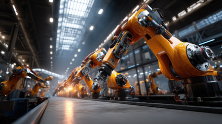 Robotic arms in modern automated factory production line for efficient manufacturing