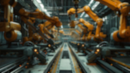 An assembly line in motion, illustrating the precision and efficiency of modern manufacturing