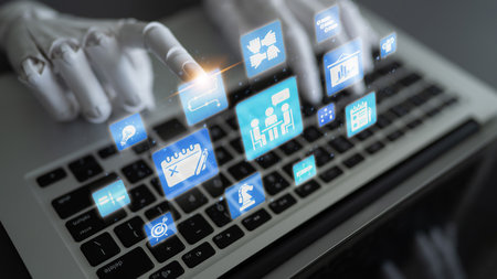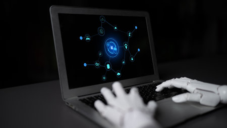 Typing on laptop with ai automation overlay
