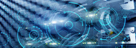 Automation of business Process and innovation technology in manufacturing. Internet and technology concept on server room background.