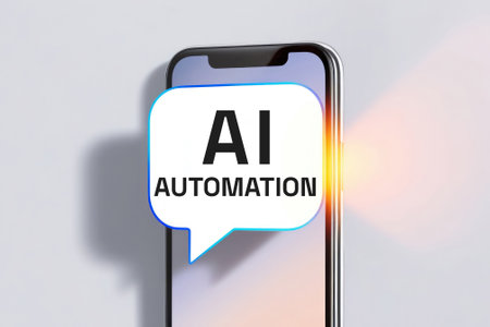 AI Automation inscription text words speech bubble on the background of a smartphone