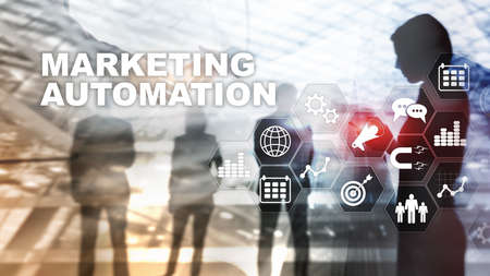 Marketing Automation Software Technology Process System Internet Business concept. Mixed media background