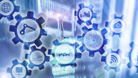 Automation of business Process and innovation technology in manufacturing. Internet and technology concept on server room background