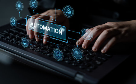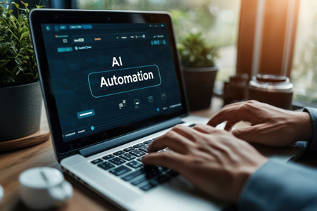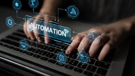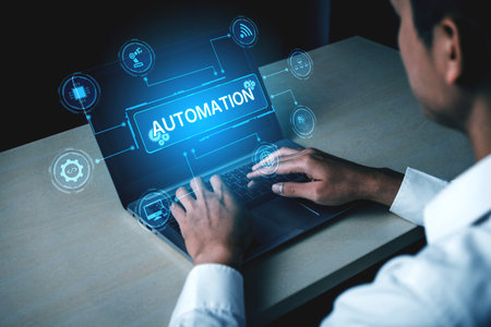 Typing on laptop with ai automation overlay