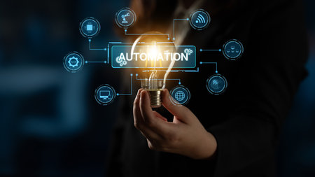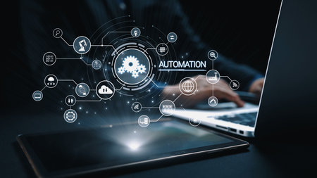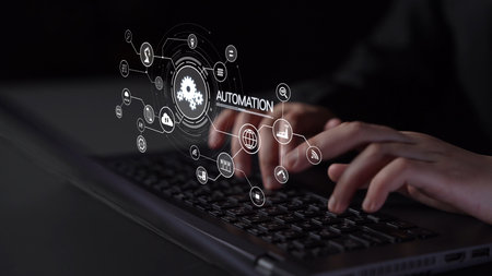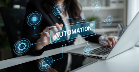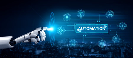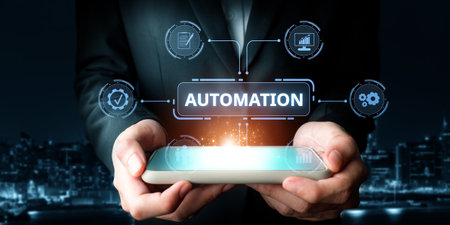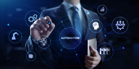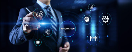 Automation concept as an innovation, improving productivity, reliability and repeatability in technology and business processes.