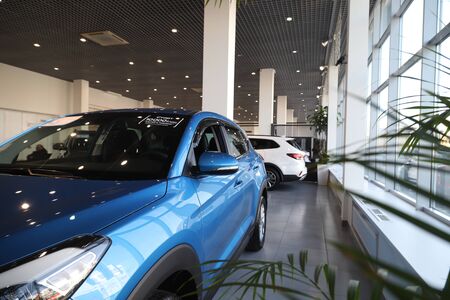 Nizhny Novgorod, Russia - March 14, 2018: Cars in showroom of dealership Hynday in Nizhny Novgorod city in 2018