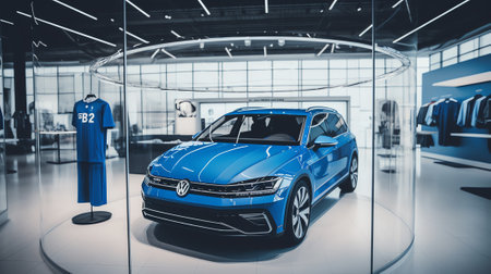 Sleek Electric Sports Car Display in Modern Dealership Showroom for Luxury Auto Enthusiasts