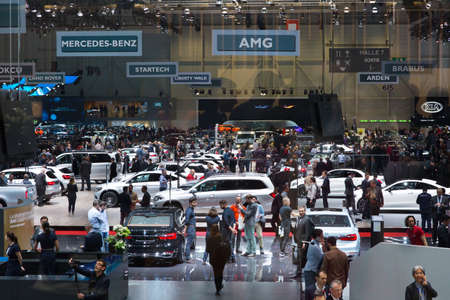 GENEVA, SWITZERLAND - March 6th, 2018: View to exhibition halls of Palexpo during 88th Geneva International Motor Show