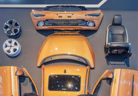 Close up of new car parts on black background