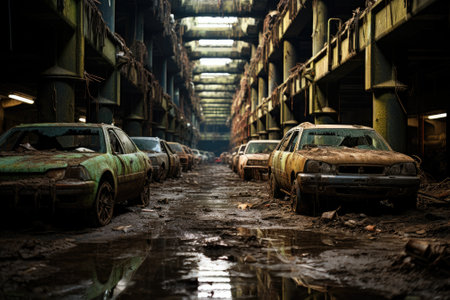 Generative AI art with Abandoned Car Dump. Wasteland of Wheels. Exploring the Car Dump Landscape. Generative AI