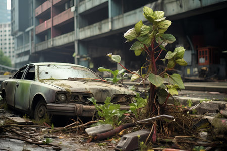 Picturesque Old city street plant. Urban danger. Generate Ai