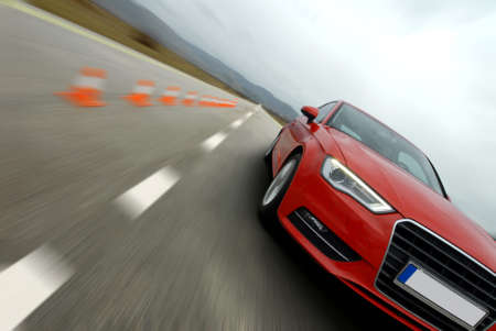 Sport car running at high speed on road