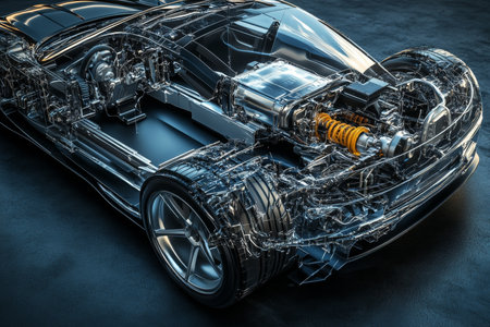 Detailed 3d rendering of a sports car s internal structure and mechanical components
