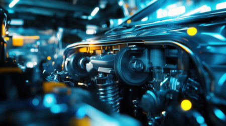 A detailed view of precision-machined metallic parts, capturing the essence of engineering excellence and innovative automotive design.